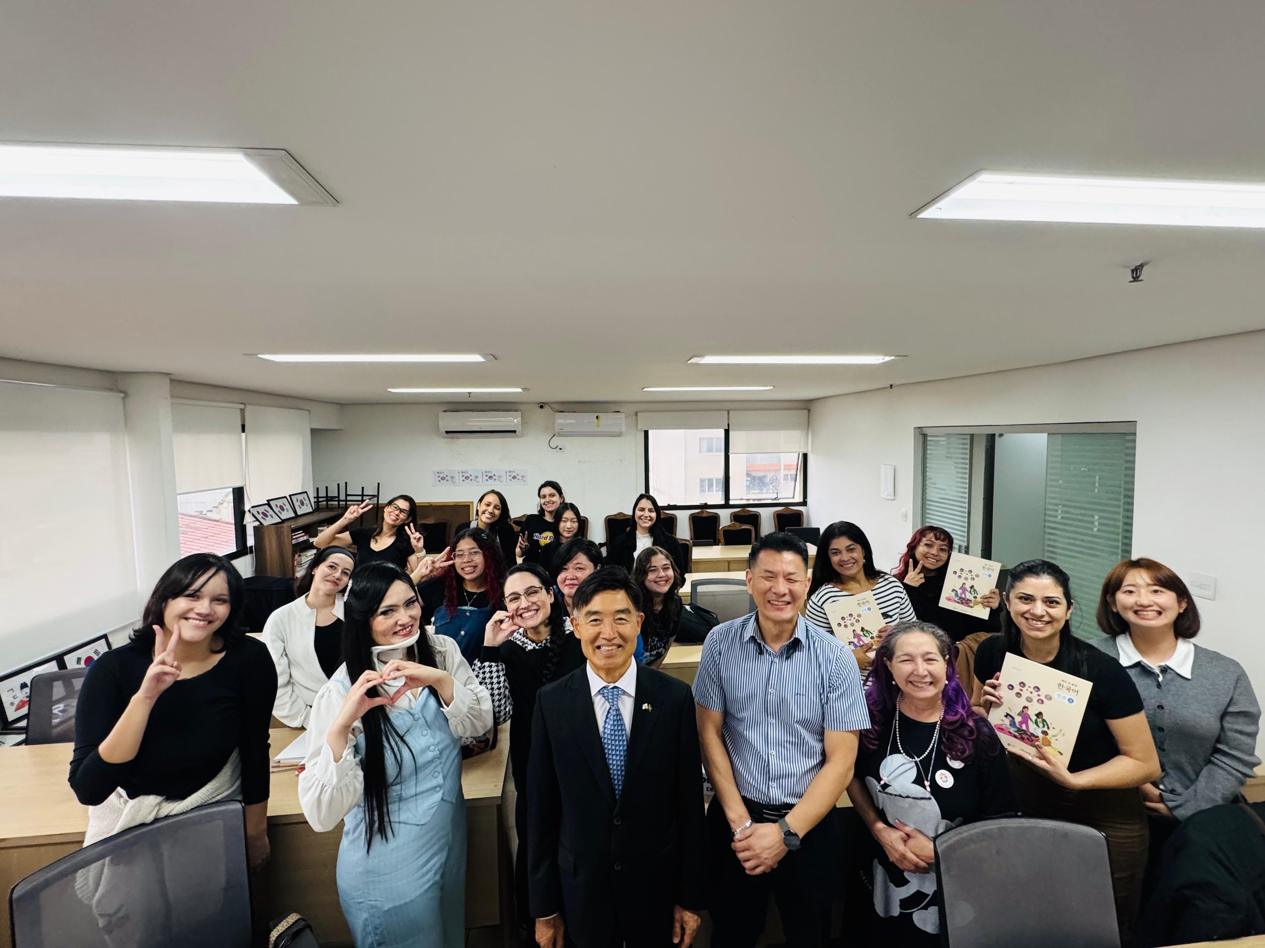 GALLERY 글보기제목총영사님 교육원 수강생 격려(2026.03.12.)2026-03-12 17:51작성자교육원첨부파일WhatsApp Image 2026-03-12 at 2.53.21 PM (1).jpeg (701.6KB)주상파울루대한민국춍영사관 채진원 총영사님이 교육원을 방문하여 한국어 수업을 듣는 학생들을 격려하셨습니다. 태그 목록 이전(채택교) Colegio Piracicabano 학교 방문(2026.3.19.)교육원2026-03-20다음(채택교) ETEC Parque da Juventude 학교 방문 (2026.03.12.)교육원2026-03-12 Powered by MangBoard