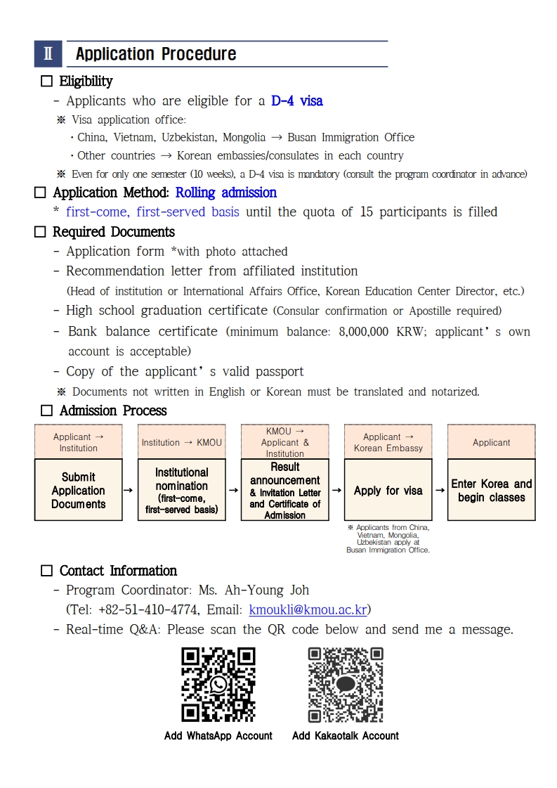 제목(유학) [KMOU-국립한국해양대학교] Guia de aplicação de '2026 K-Sail'2026-02-20 11:08작성자교육원첨부파일3. 신청서 양식(영문).xlsx (13.9KB) 목록 다음(유학) Novo Programa Online da Sungkyunkwan University (SKKU) – Cursos Gratuitos com Crédito Acadêmico | Primavera 2026교육원2026-02-05 Powered by MangBoard