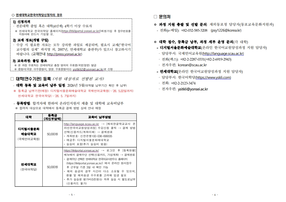 2026년 상반기 한국어교원양성과정 지원 사업 안내