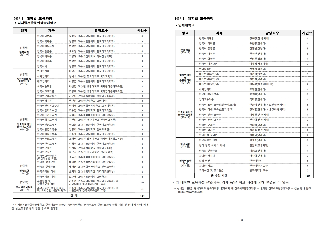 해당 과정은 디지털서울문화예술대학교 국제언어교육원과 연세대학교 한국어학당에서 운영되며, 과정 수료 시 한국어교원 3급 자격시험 응시 자격이 부여되고 학교별 이수증이 발급됩니다.